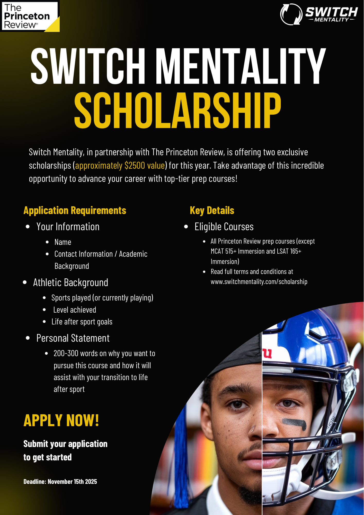 ✦ Switch Mentality and The Princeton Review to provide 2 free TPR prep course scholarships.